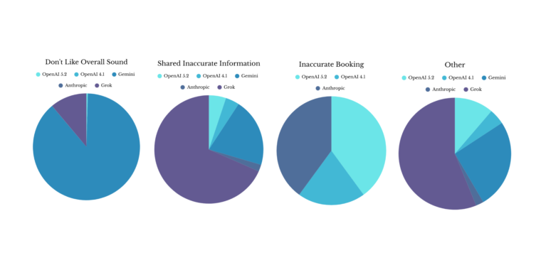 If your AI sounds off, nothing else matters. This is the strongest signal of sales quality. When we combined all feedback categories (excluding booking due to low sample size) Athropic came out on top, with OpenAI (4.1) close behind.